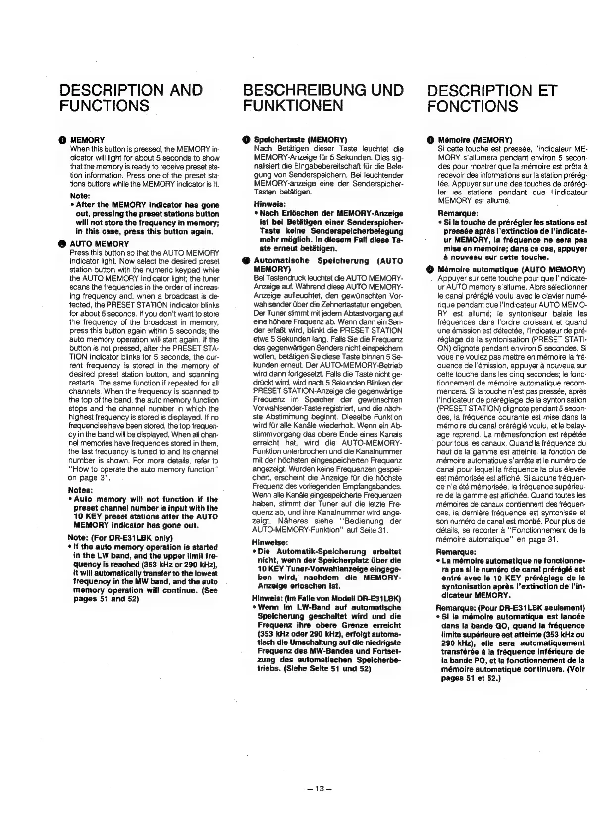 JVC DR-E31BK - Description and Functions; Beschreibung und Funktionen; Description et Fonctions