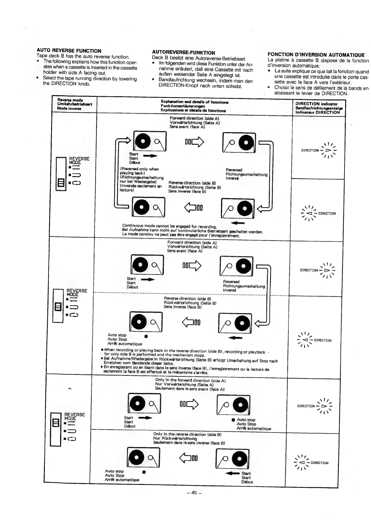 Autoreverse-Betriebsart.