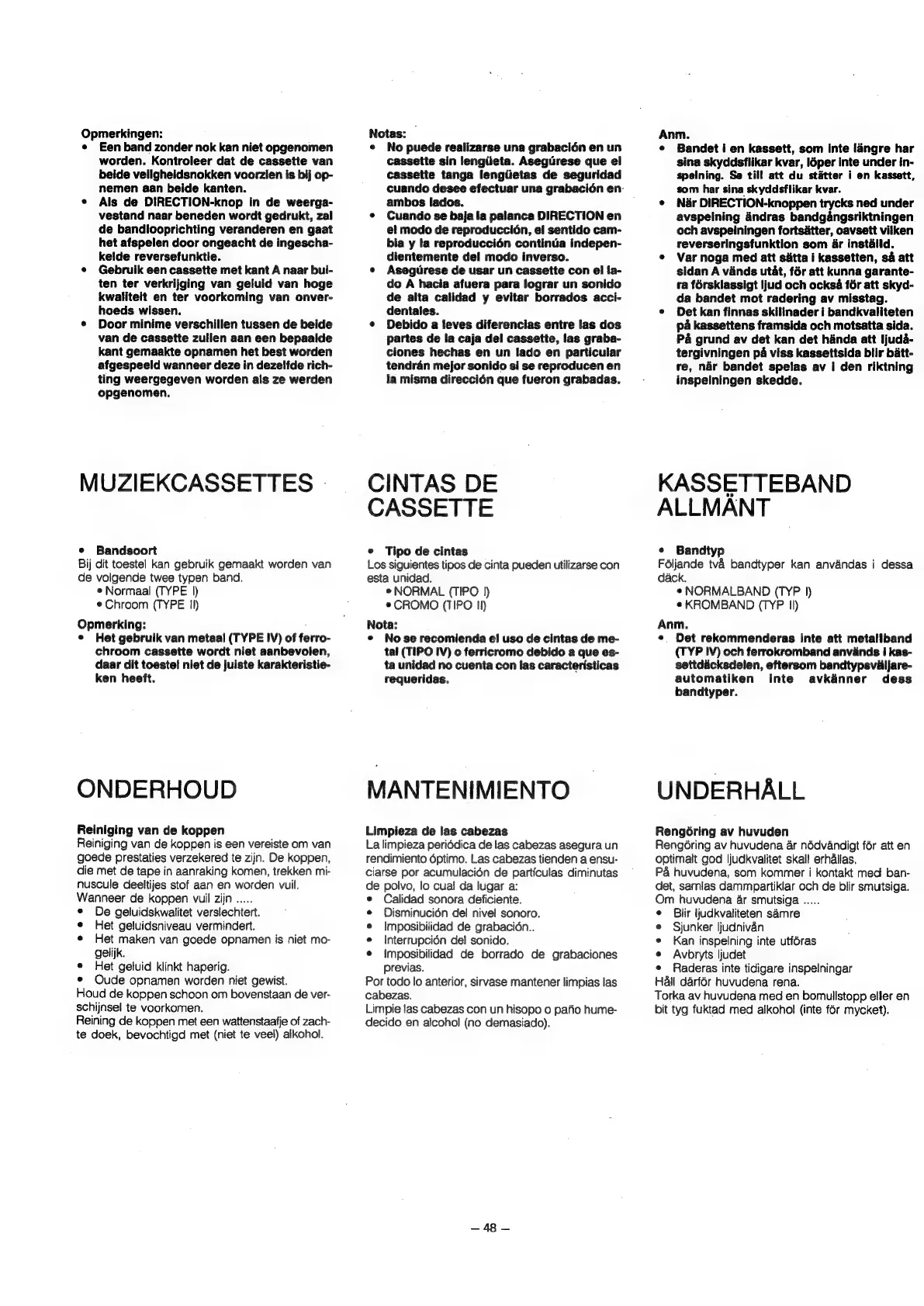 JVC DR-E31BK - Cintas de Cassette; Mantenimiento