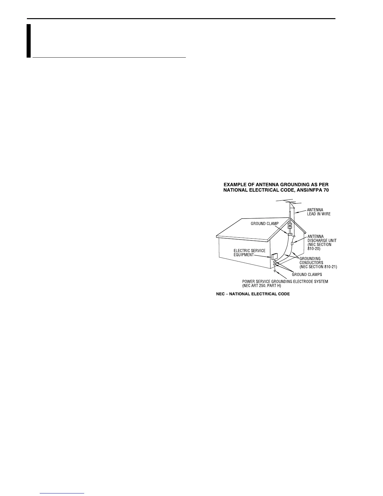 be sure the antenna or cable system is grounded so as to provide