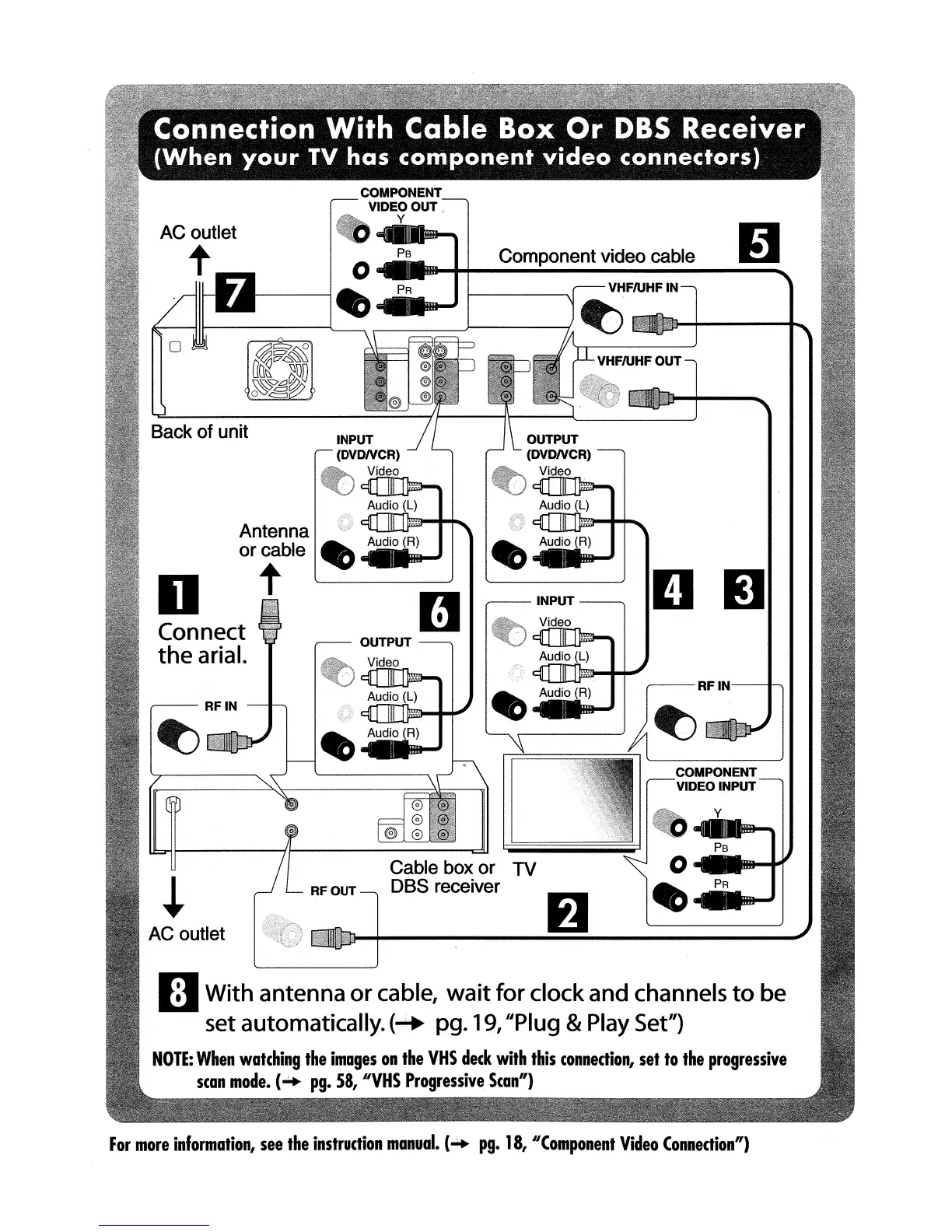 JVC DR-MV5S - Connection With Cable Box Or DBS Receiver (When your TV has component video connectors)