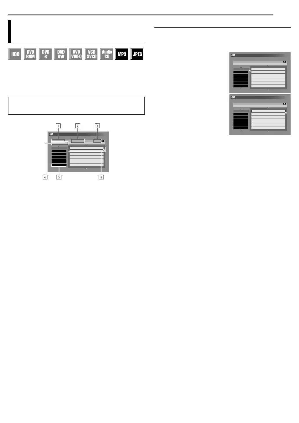 The MP3/WMA/JPEG Navigation enables you to search and select