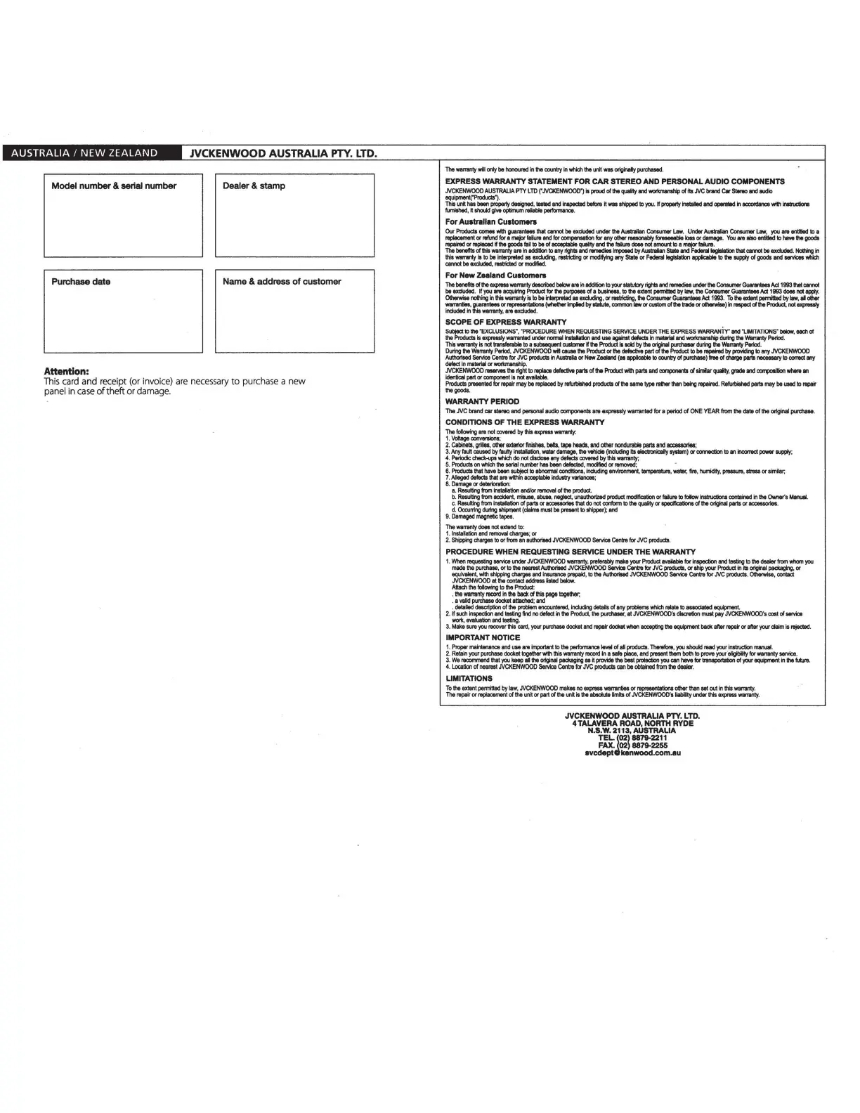JVCKENWOOD AUSTRALIA PTY.
