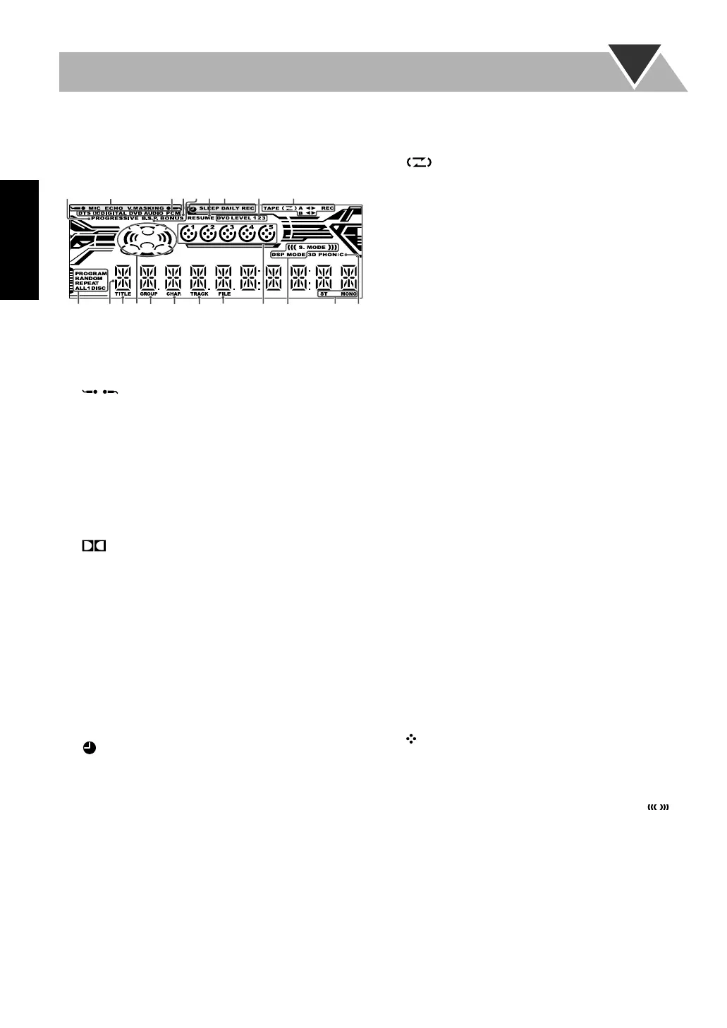 • Se enciende para indicar el número de título para DVD