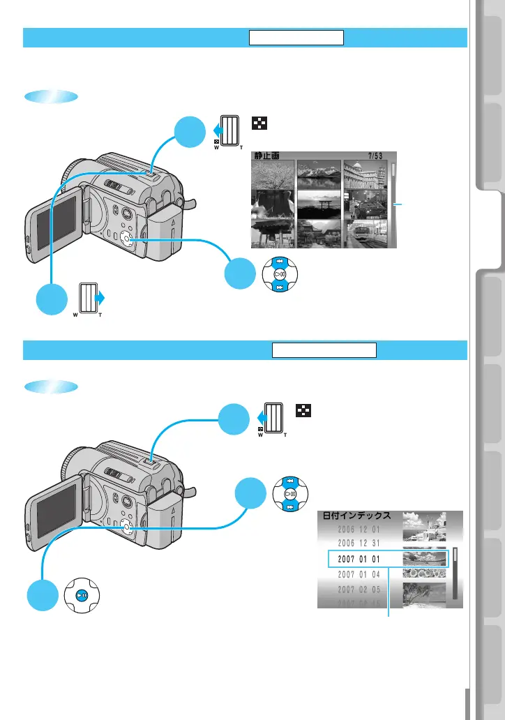 ズームレバーをさらに W 側に押す。操作方法はインデックスと同じ。