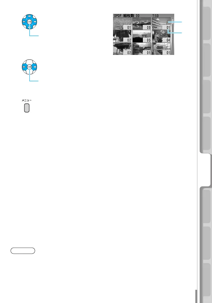 ●最大で 999 枚 ( 種類 ) までの静止画を、DPOF で印刷するように設定で