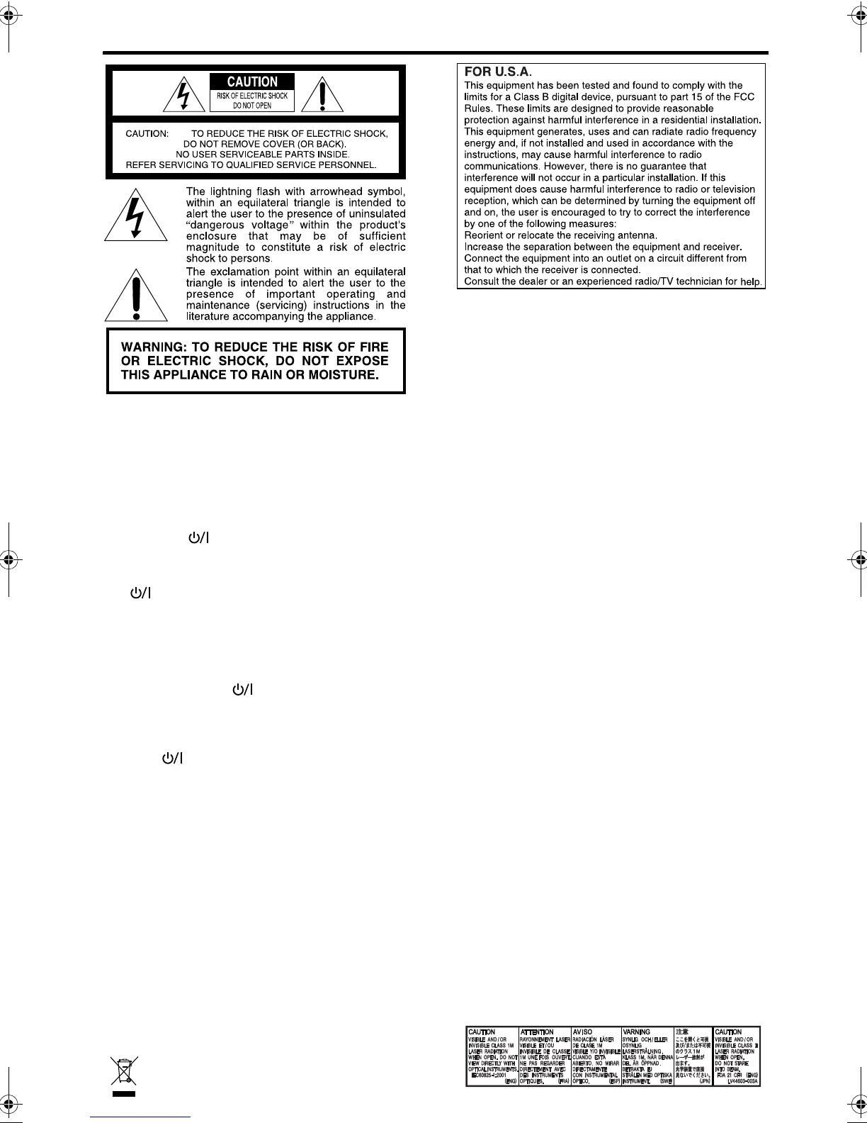 2. Ne pas exposer l’appareil à la pluie ni à l’humidité.