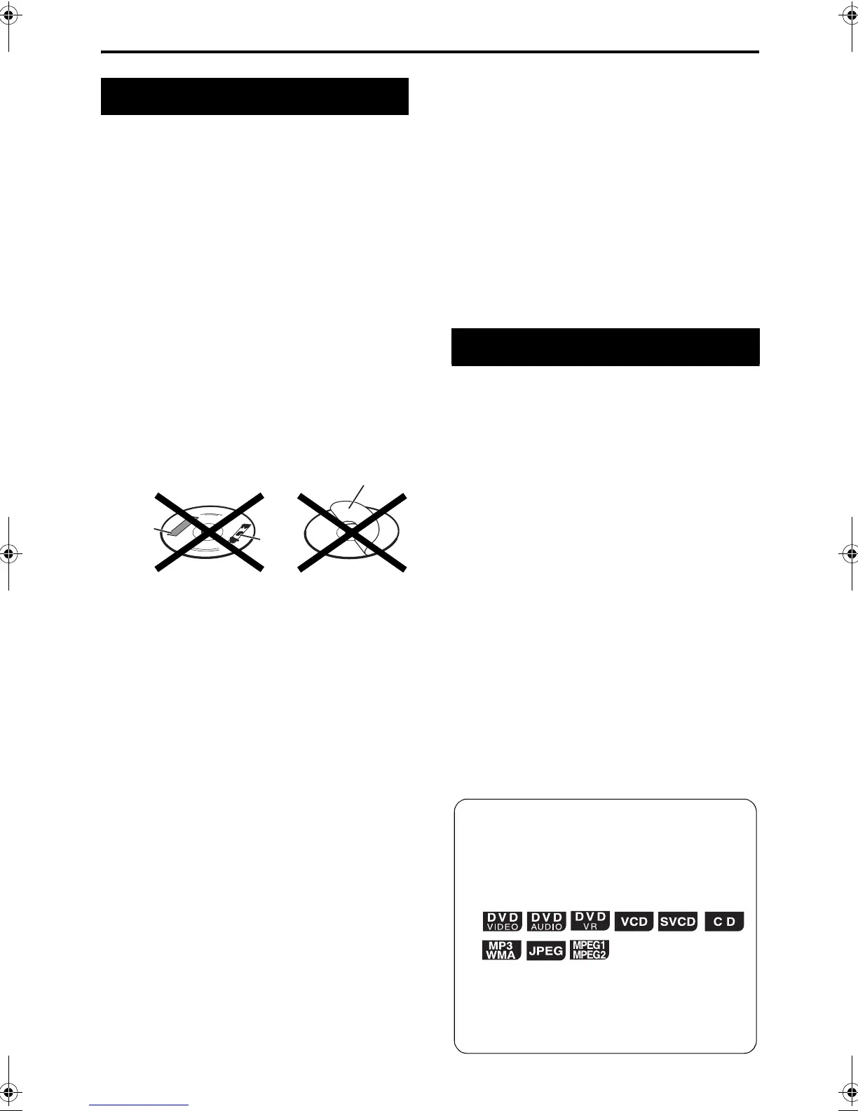 • Do not use a disc with tape, stickers, or paste on it,