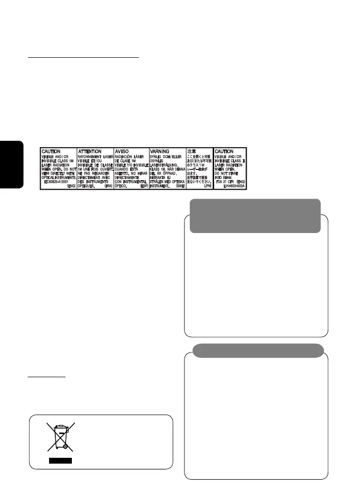 3. ATTENTION: (Pour les Etats-Unis) Radiation laser de classe II visibles et/ou invisible si l’appareil est ouvert.