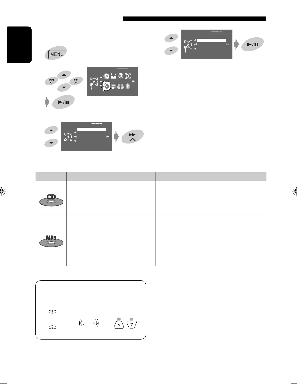 Track: Repeats current track. Folder: Randomly plays all tracks of current folder,