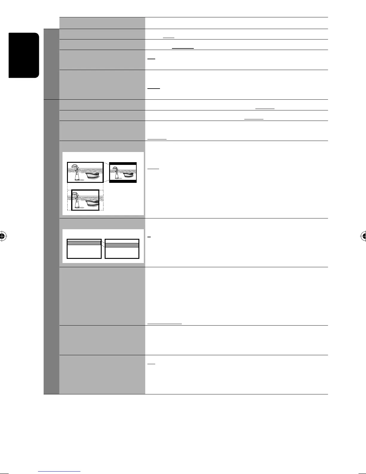 Subtitle Select the initial subtitle language or erase the subtitle (<Off>); Initial