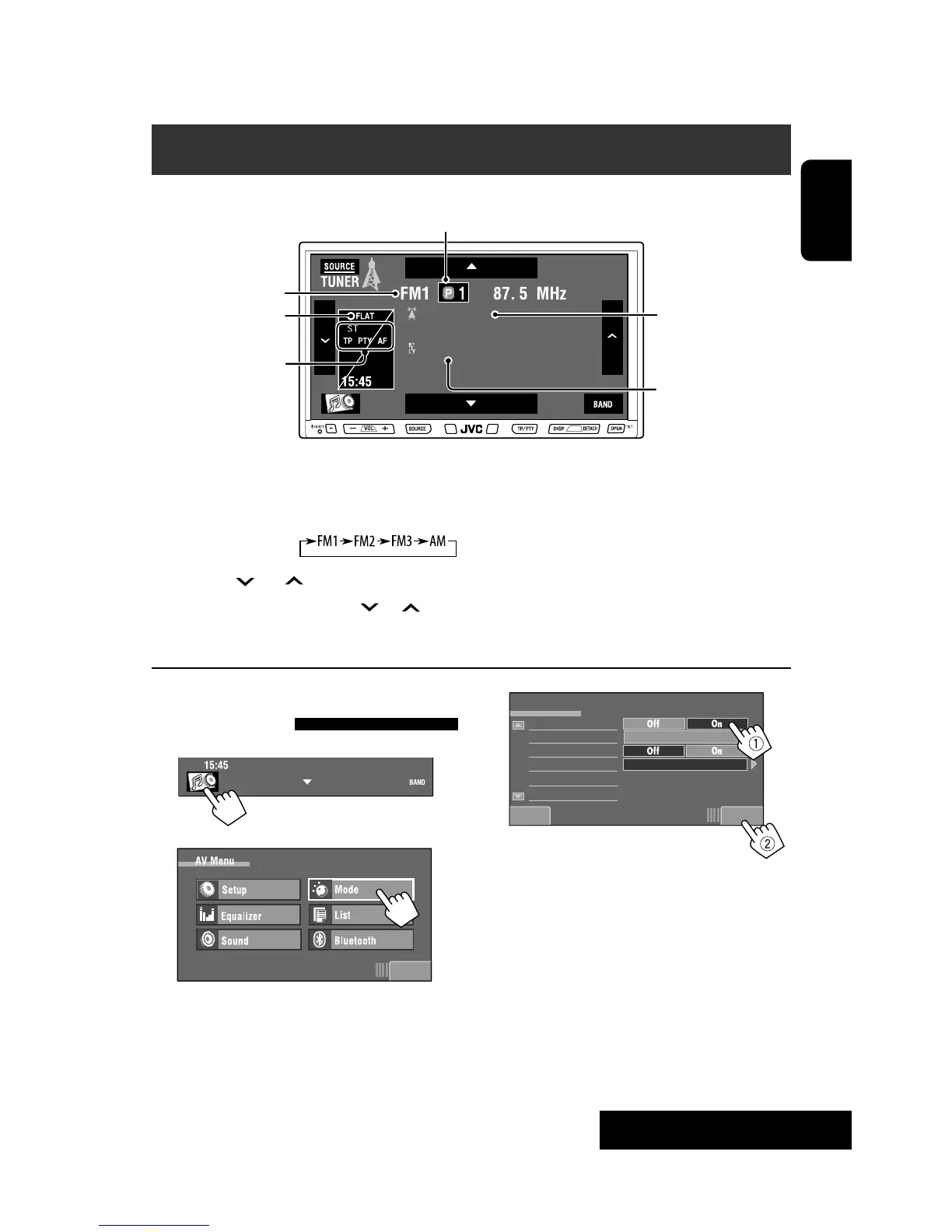 ~ Press [SOURCE], then p(ress [TUNER]☞. page 11)