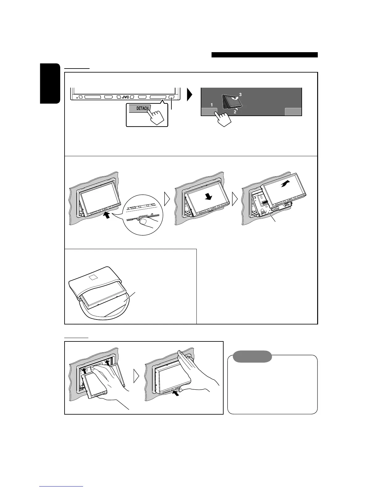 Detaching/attaching the monitor panel While the unit is turned on: