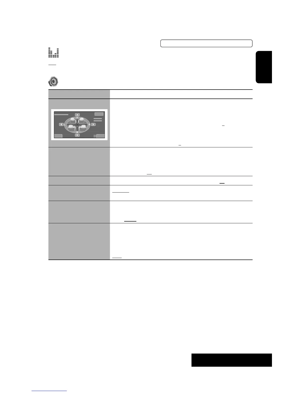 Crossover Adjust the crossover frequency between the front/rear speakers and the