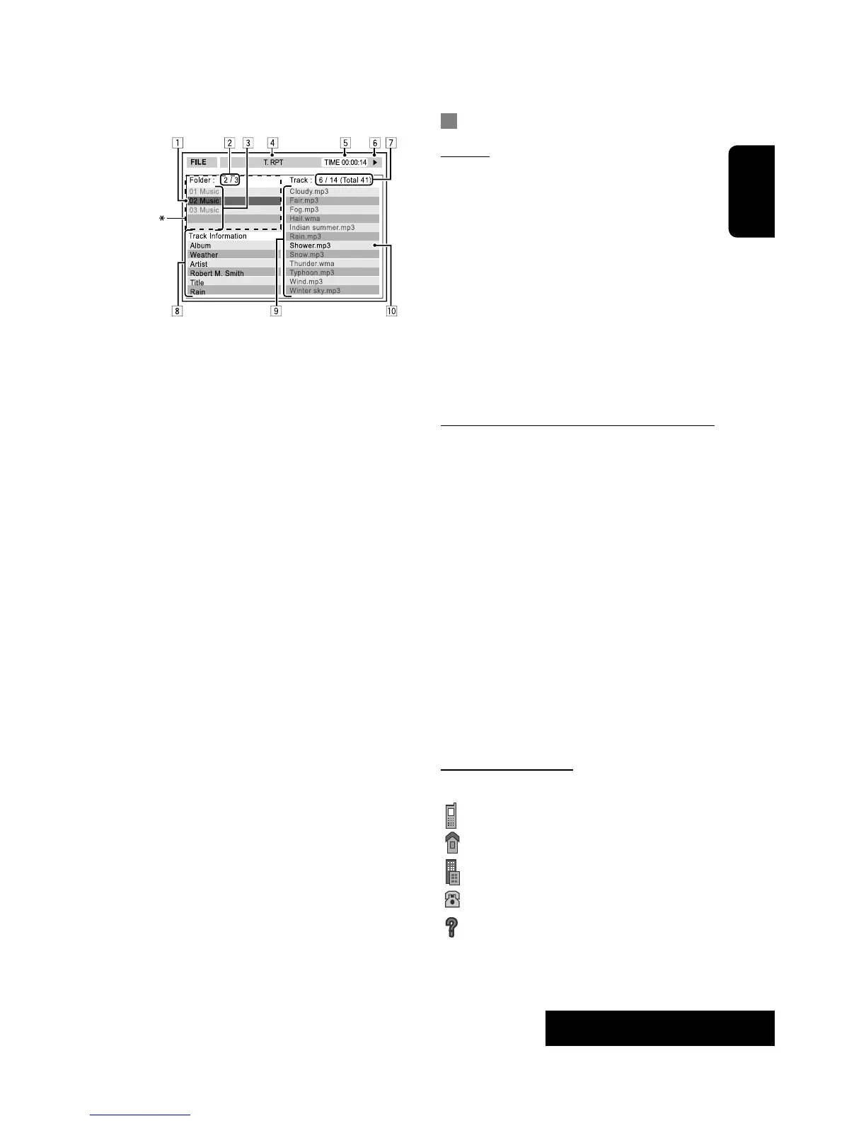 8 Track information (only for MP3/WMA/WAV/