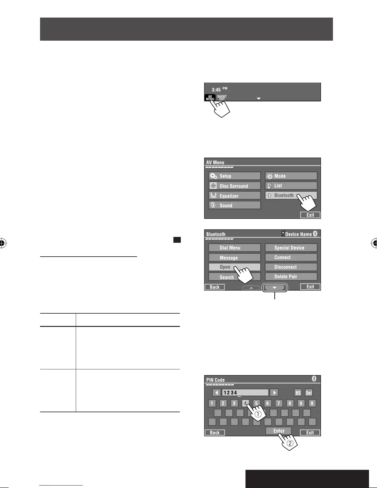 PHONE” and “Bluetooth AUDIO”) for the first time,