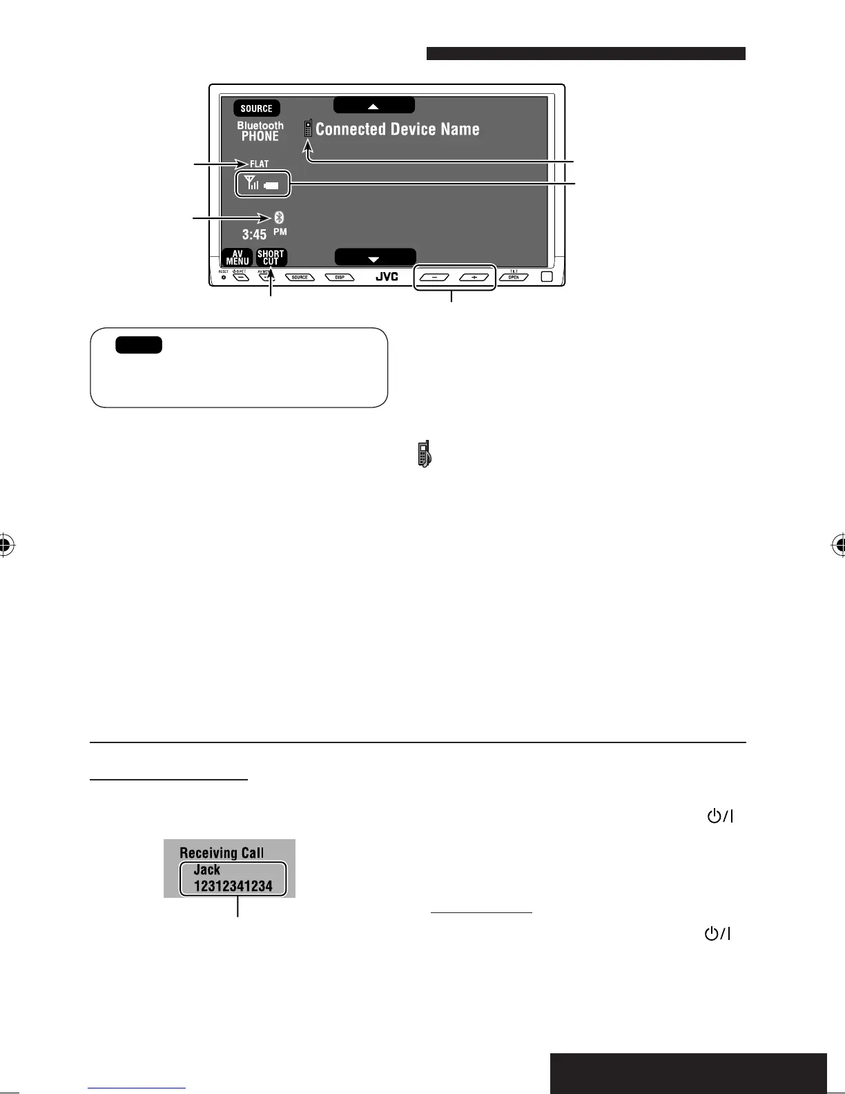 ~ Press [SOURCE], then press [Bluetooth PHONE]. (☞ page 9)