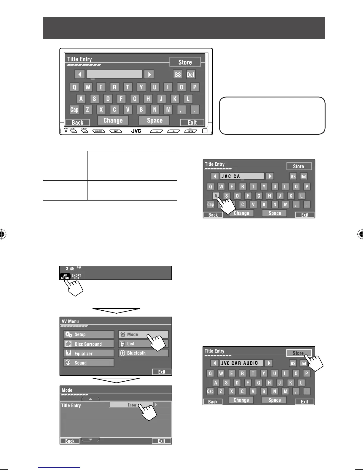 Ÿ Display <Title Entry> screen.