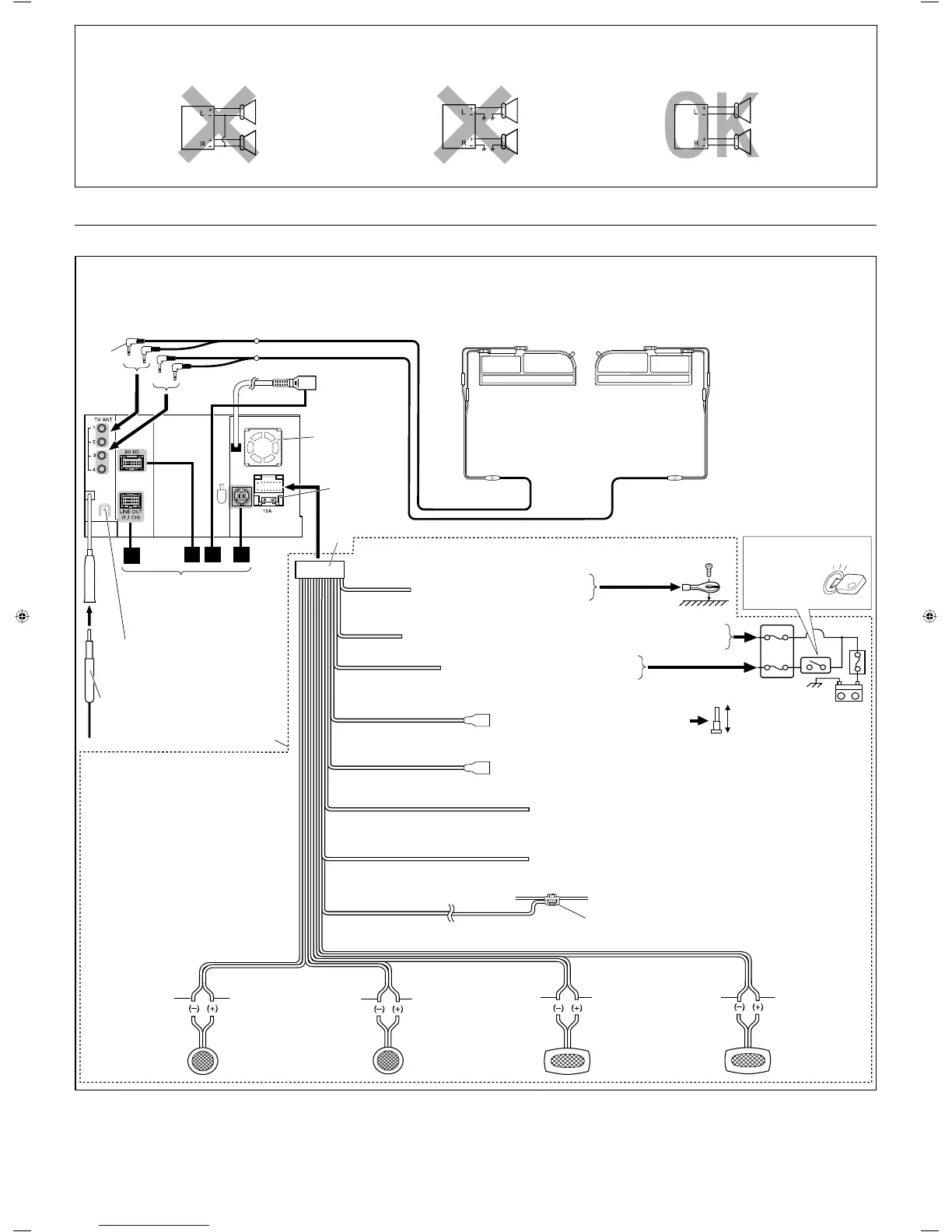• BEFORE connecting the speaker leads of the power cord to the speakers, check the speaker wiring in your car.