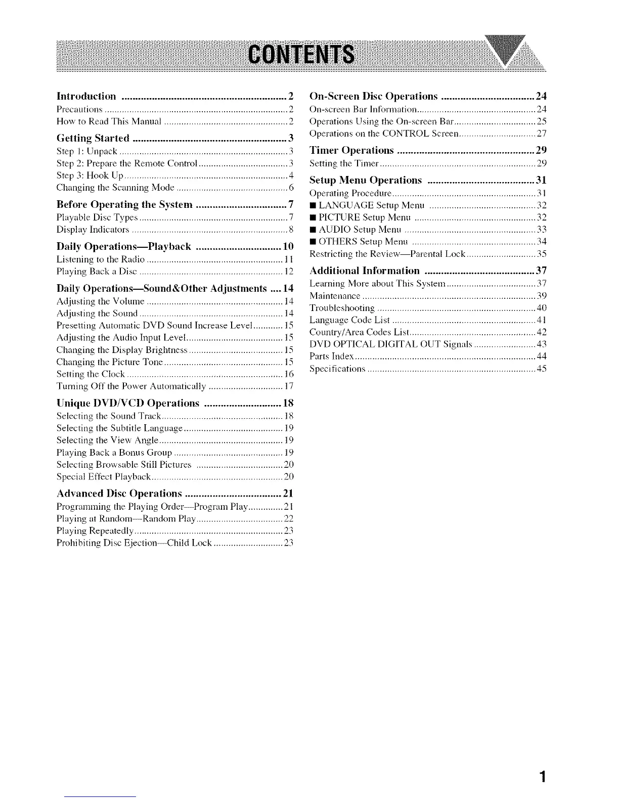 DVD OPTICAL DIGITAL OUT Signals ......................... 43