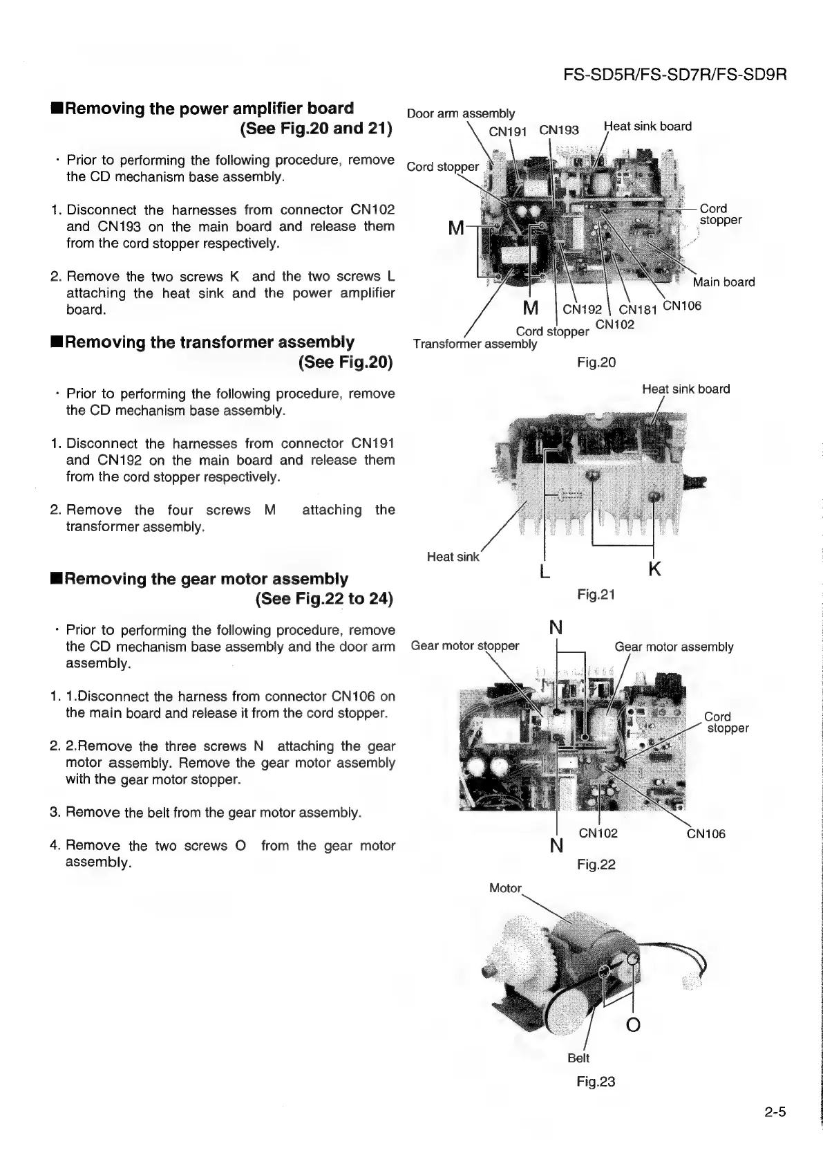 JVC FS-SD5R - Gear Motor Assembly Removal; Fan Motor Assembly Removal