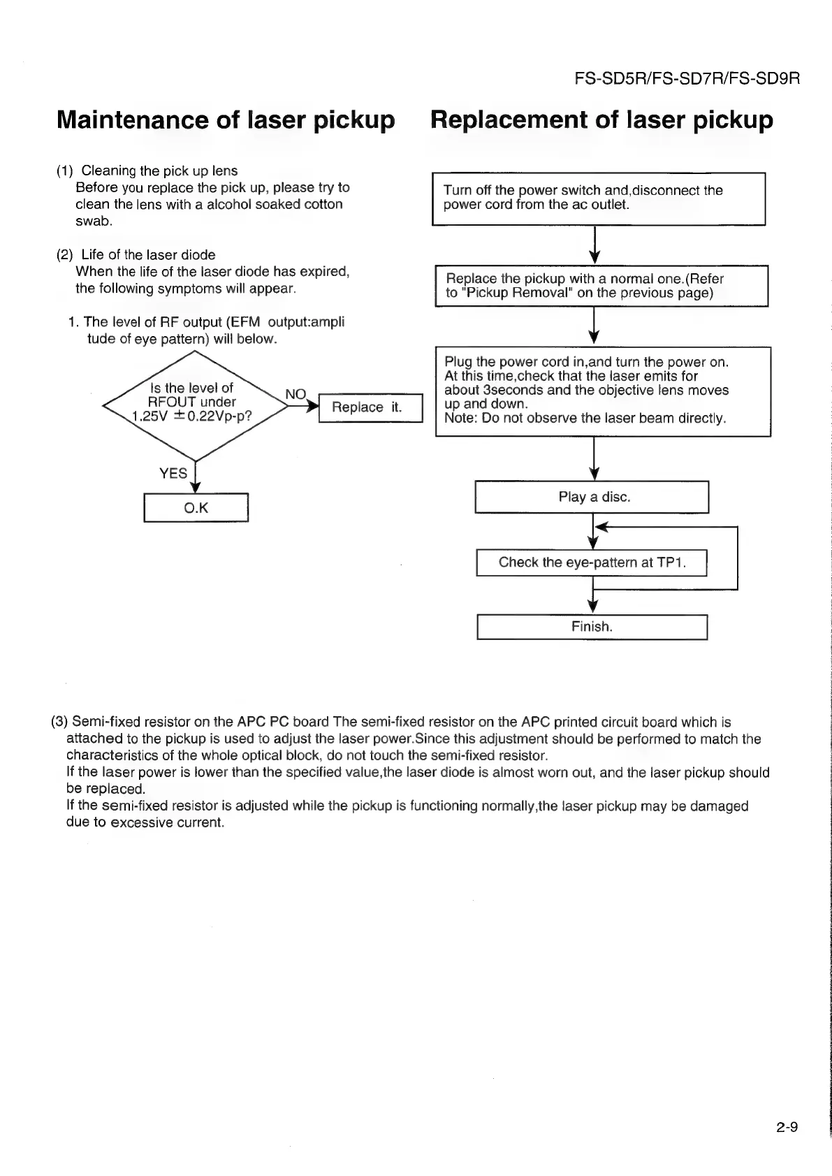JVC FS-SD5R - Laser Pickup Maintenance; Cleaning the Pickup Lens; Laser Diode Life and Symptoms; Laser Pickup Replacement