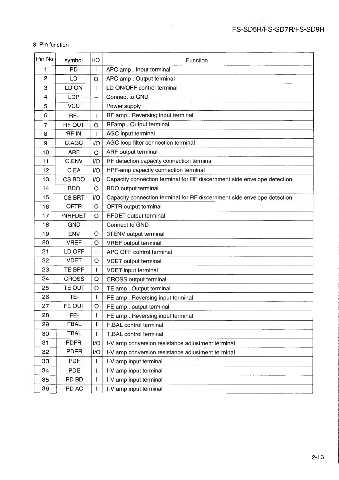 FS-SD5R/FS-SD7R/FS-SD9R