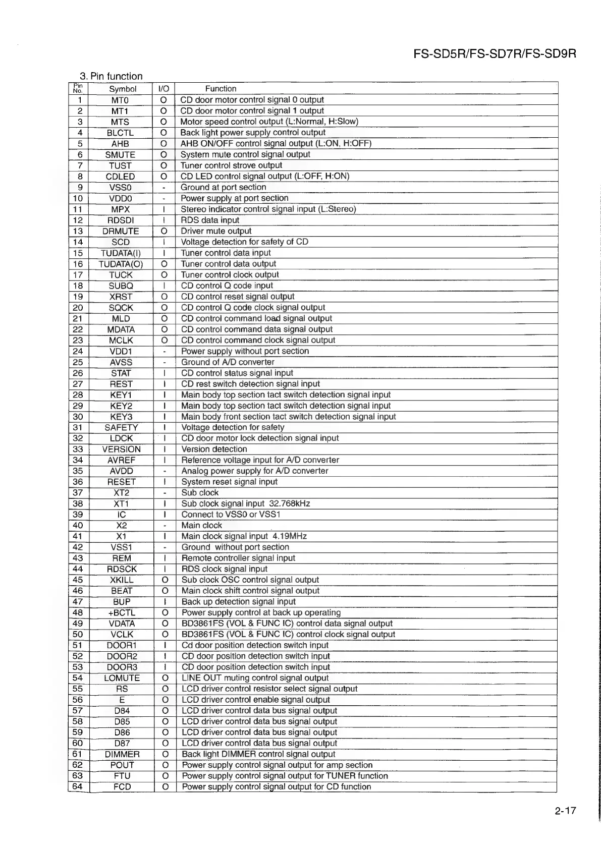 JVC FS-SD5R - UPD780024 AGKA11 (IC701) Pin Function