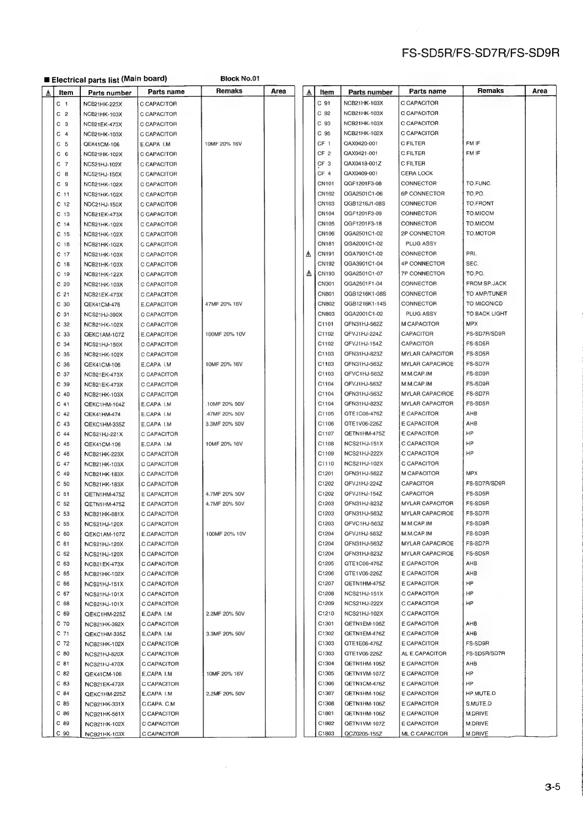 JVC FS-SD5R - Electrical Parts List (Main Board)