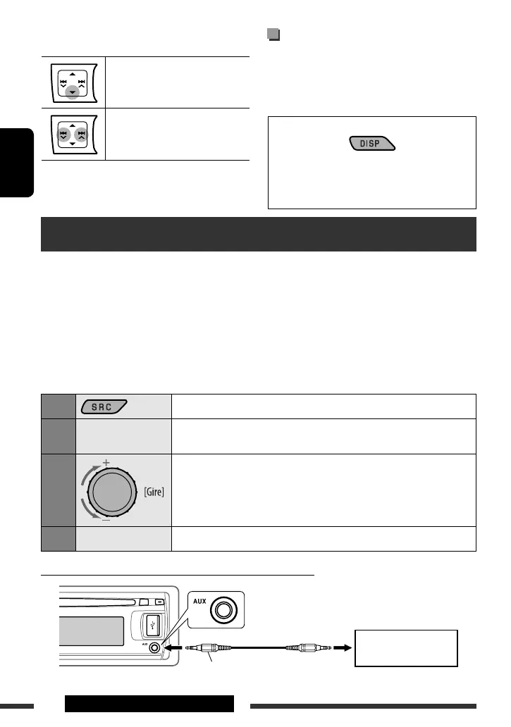 Preparativos: Asegúrese de que esté seleccionado “AUX ON” en el ajuste “SRC SELECT” = “AUX IN”;