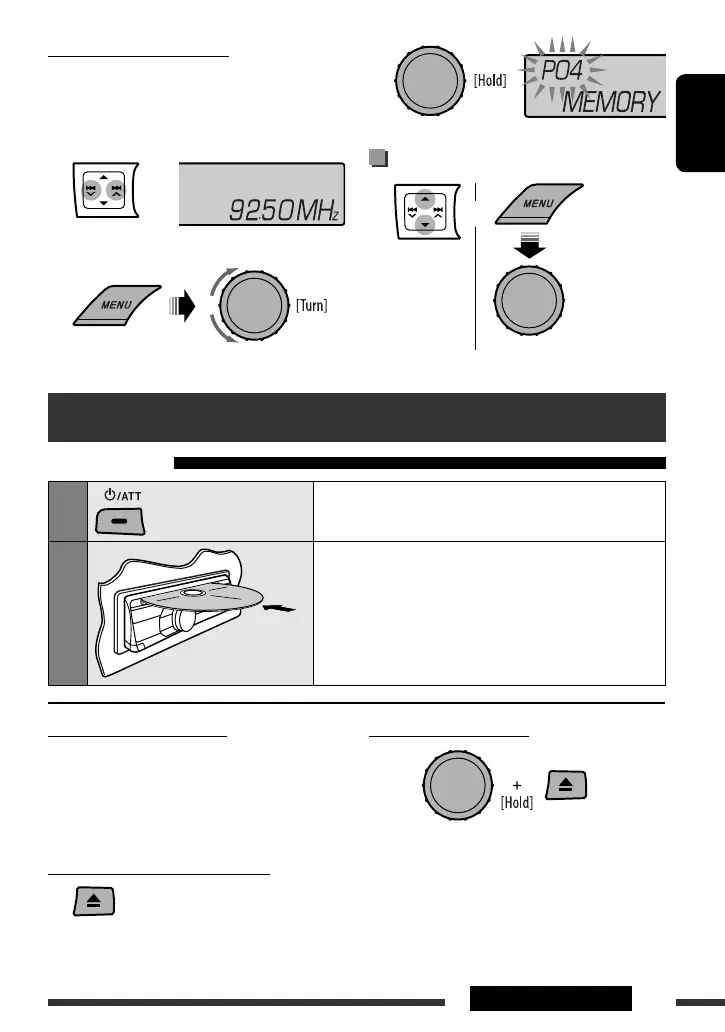 Ex.: Storing FM station of 92.50 MHz into preset