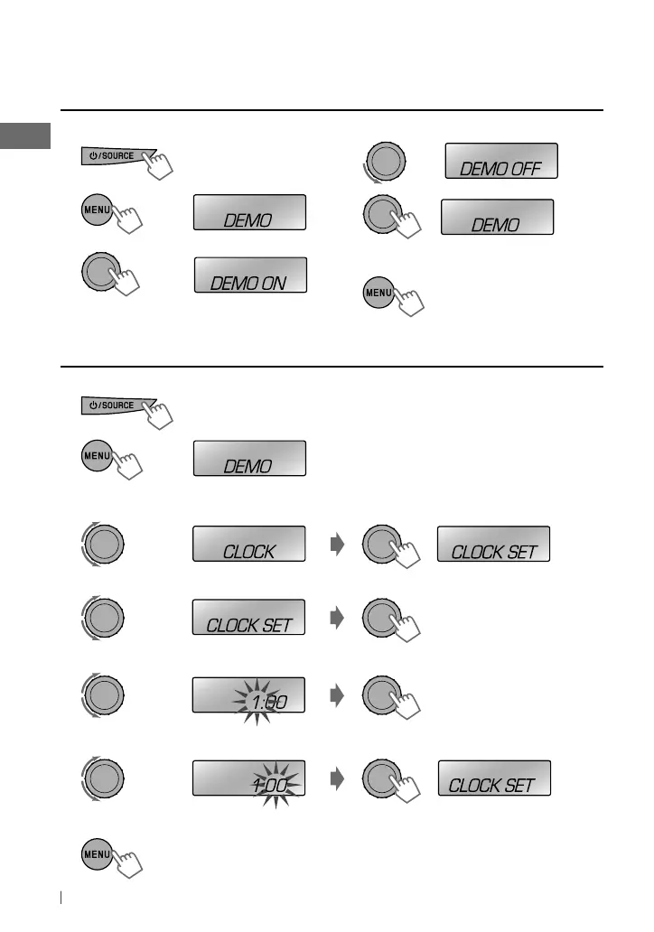 JVC GET0699-001A - Cancelación de las Demostraciones en Pantalla; Puesta en Hora del Reloj