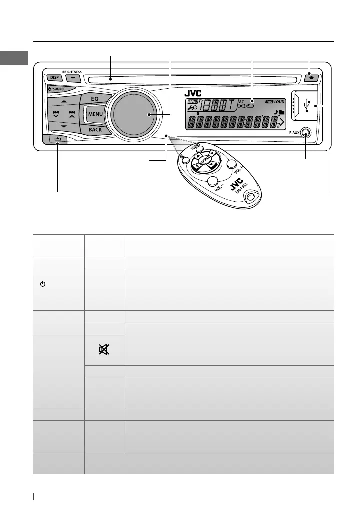 Mutes the sound during playback. If the source is “CD” or “USB/