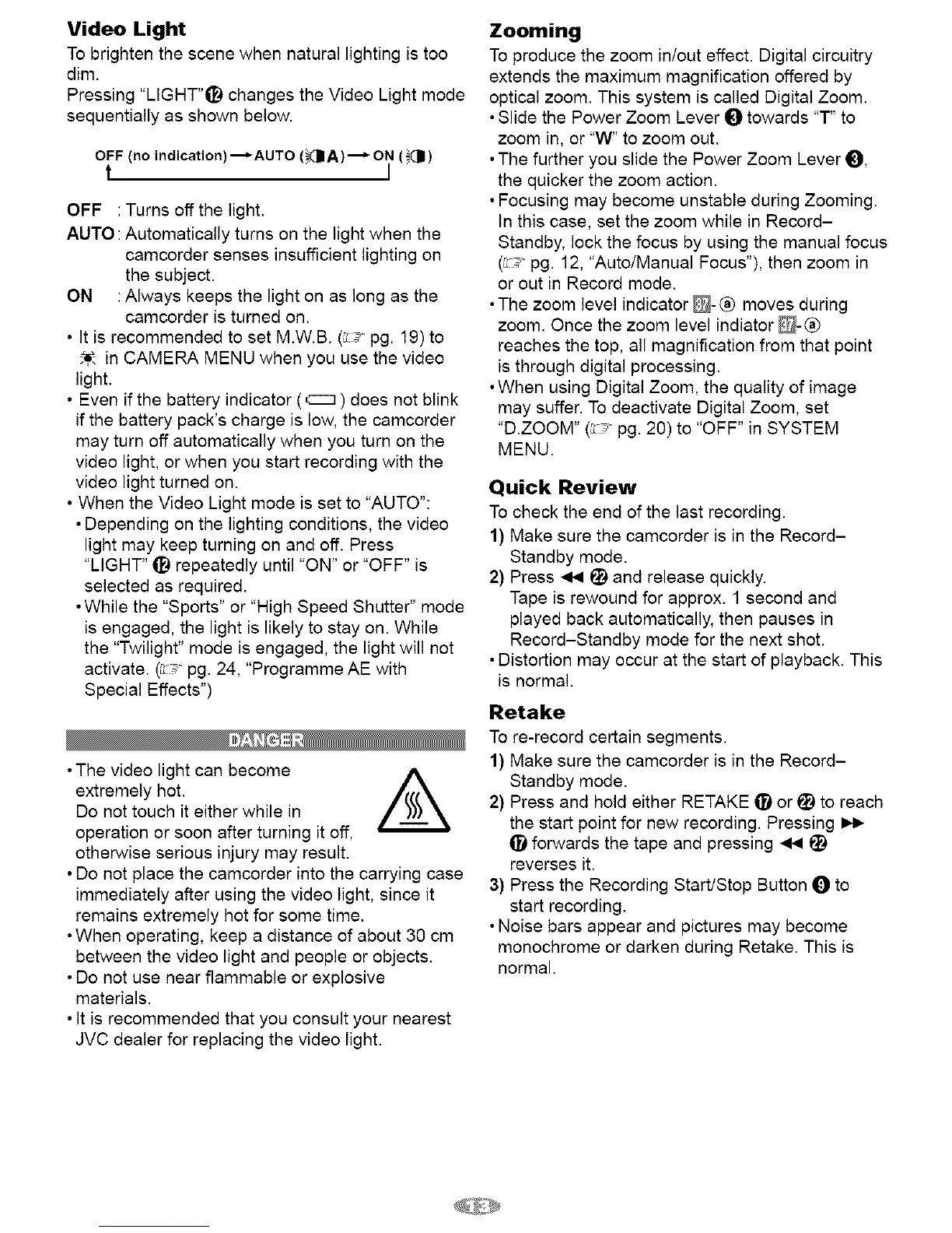 (_. pg. 12, "Auto/Manual Focus"), then zoom in