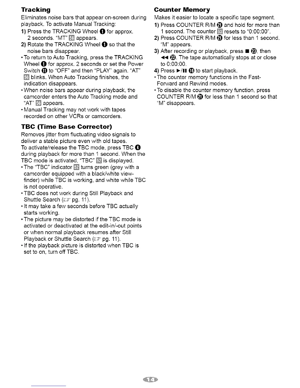 • If the playback picture is distorted when TBC is