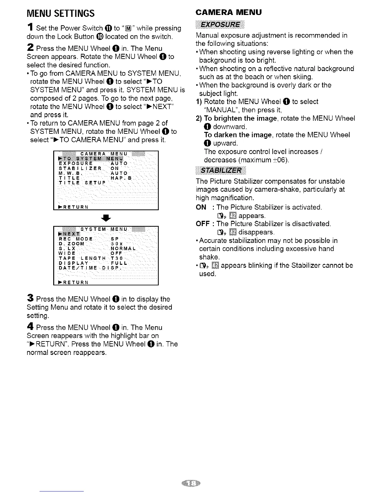 • To go from CAMERA MENU to SYSTEM MENU,