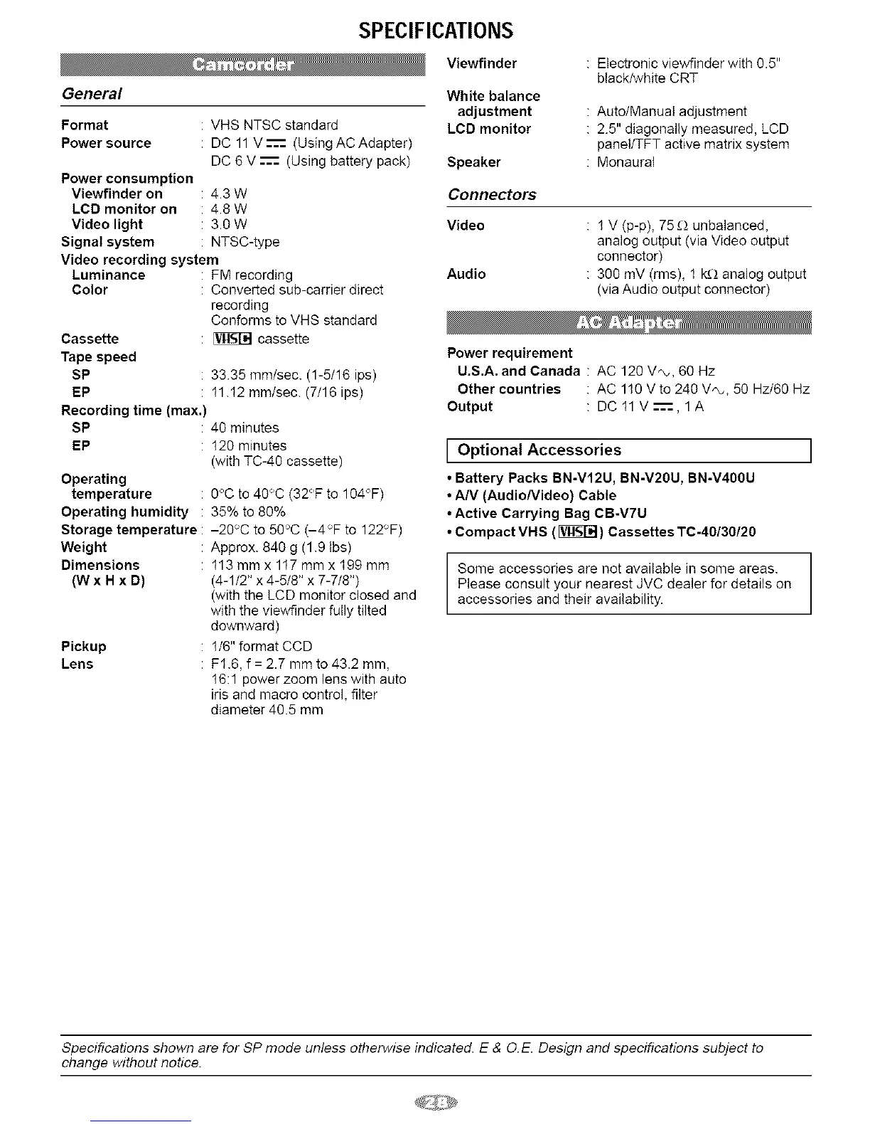 • Battery Packs BN-VI2U, BN-V20U, BN-V400U