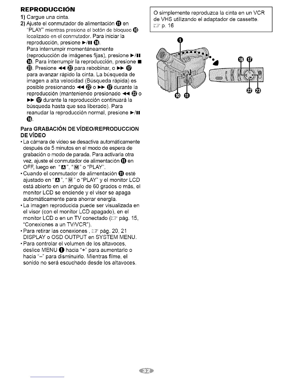 Para GRABACION DE ViDEO/REPRODUCCION
