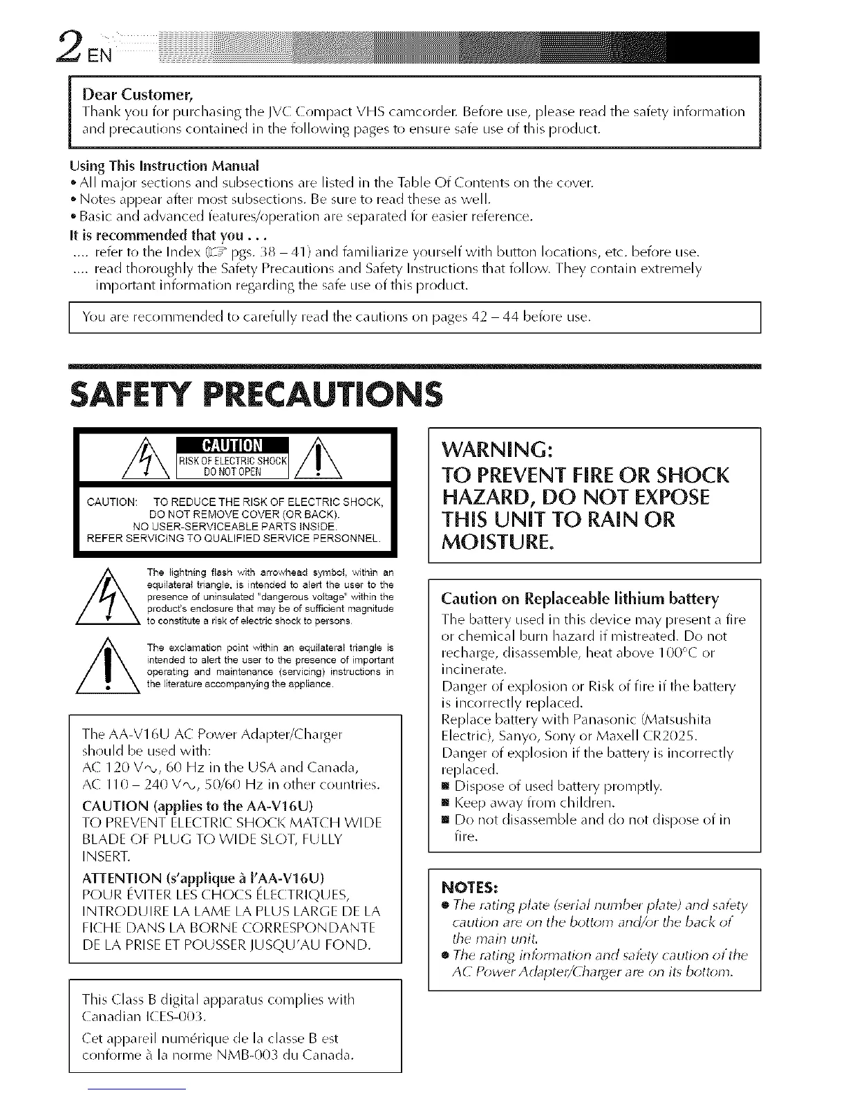 Thanl<youforpurchasingtheIVCCrlmpactVHScamcorder.Beforeuse,[)lease read the safety information