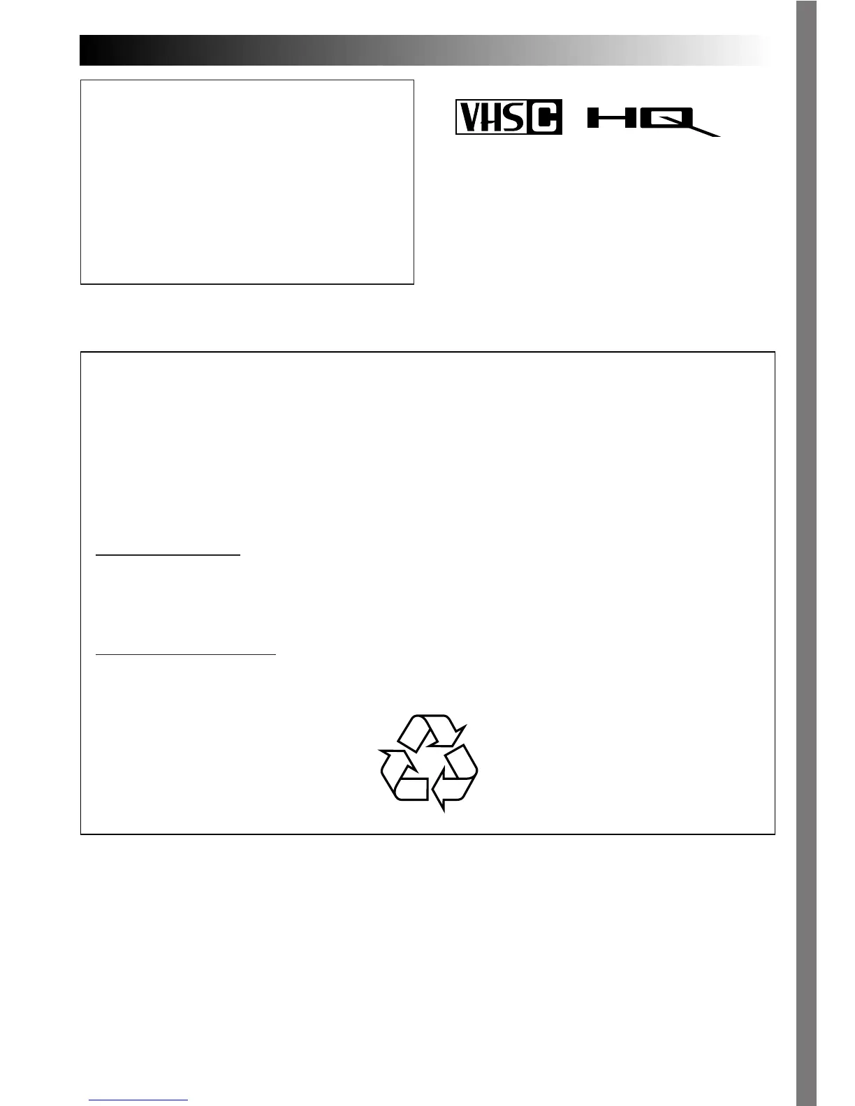 VHS-C video cassette. Only cassettes marked