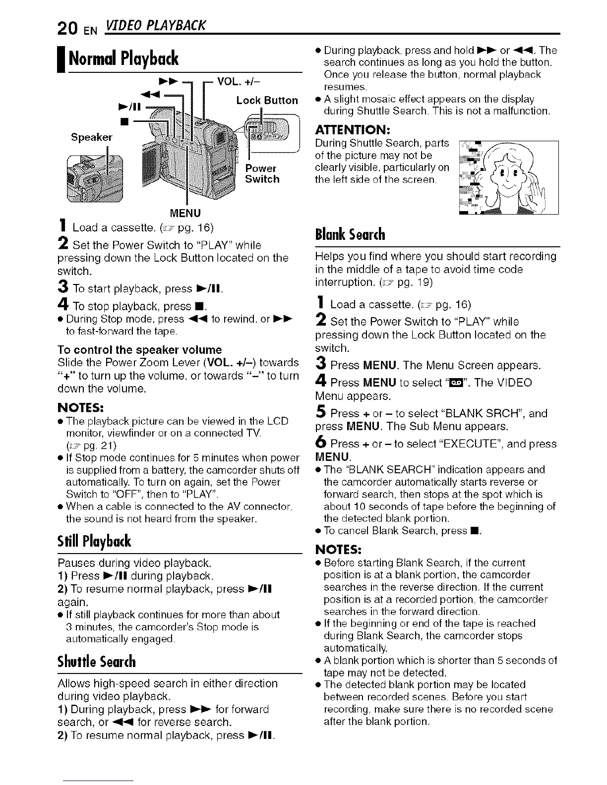 during Blank Search, the camcorder stops