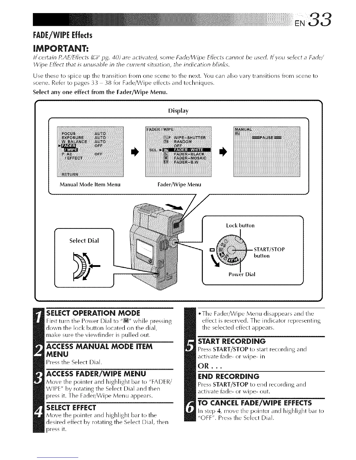 scene. Refer to pages 3} }8 for Fade/Wipe effects and techniques.