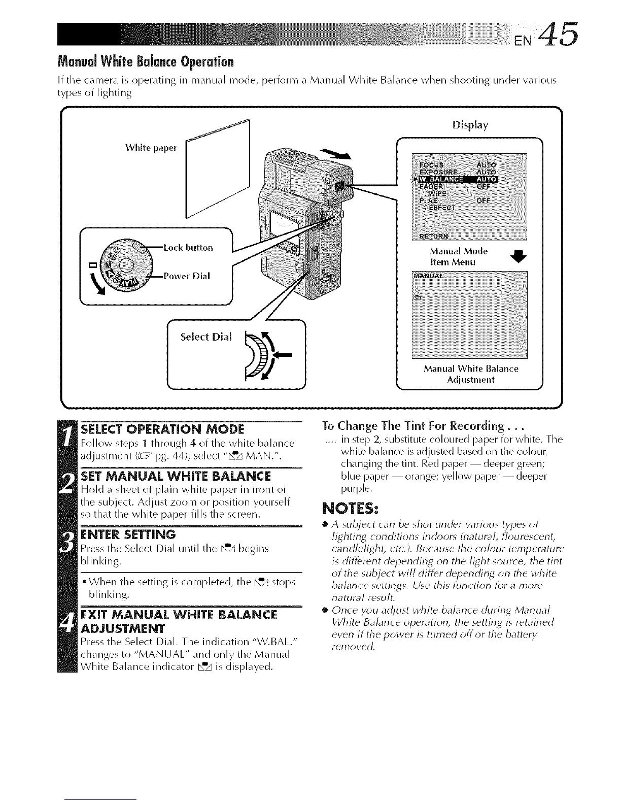 Press the Select Dial. The indJc_tion "W.BAL/'