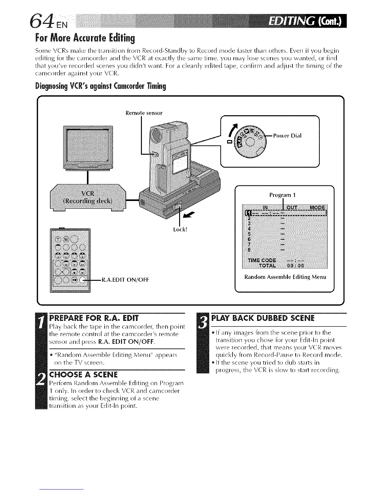 tl/at you've recorded scenes you didn't want. For a cleanly edited tape, confirm and adjust the timing of the
