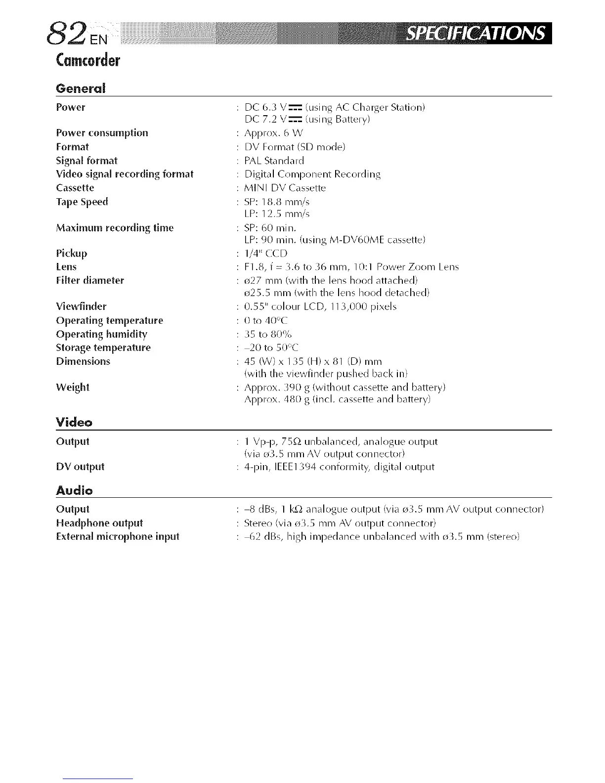 LP: 90 rnin. (using M-DV60ME cassette)