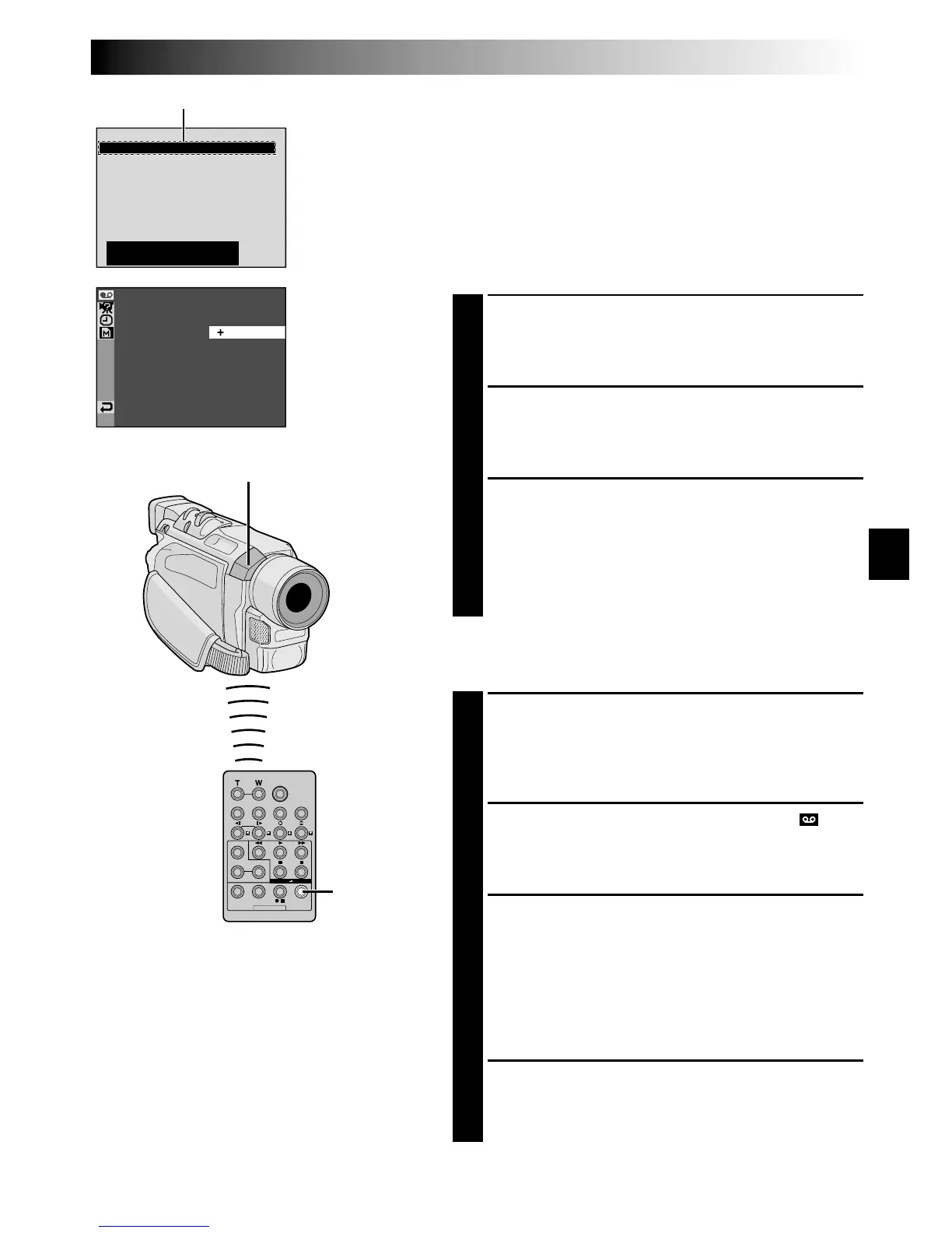 remote control at the camcorder’s remote sensor and