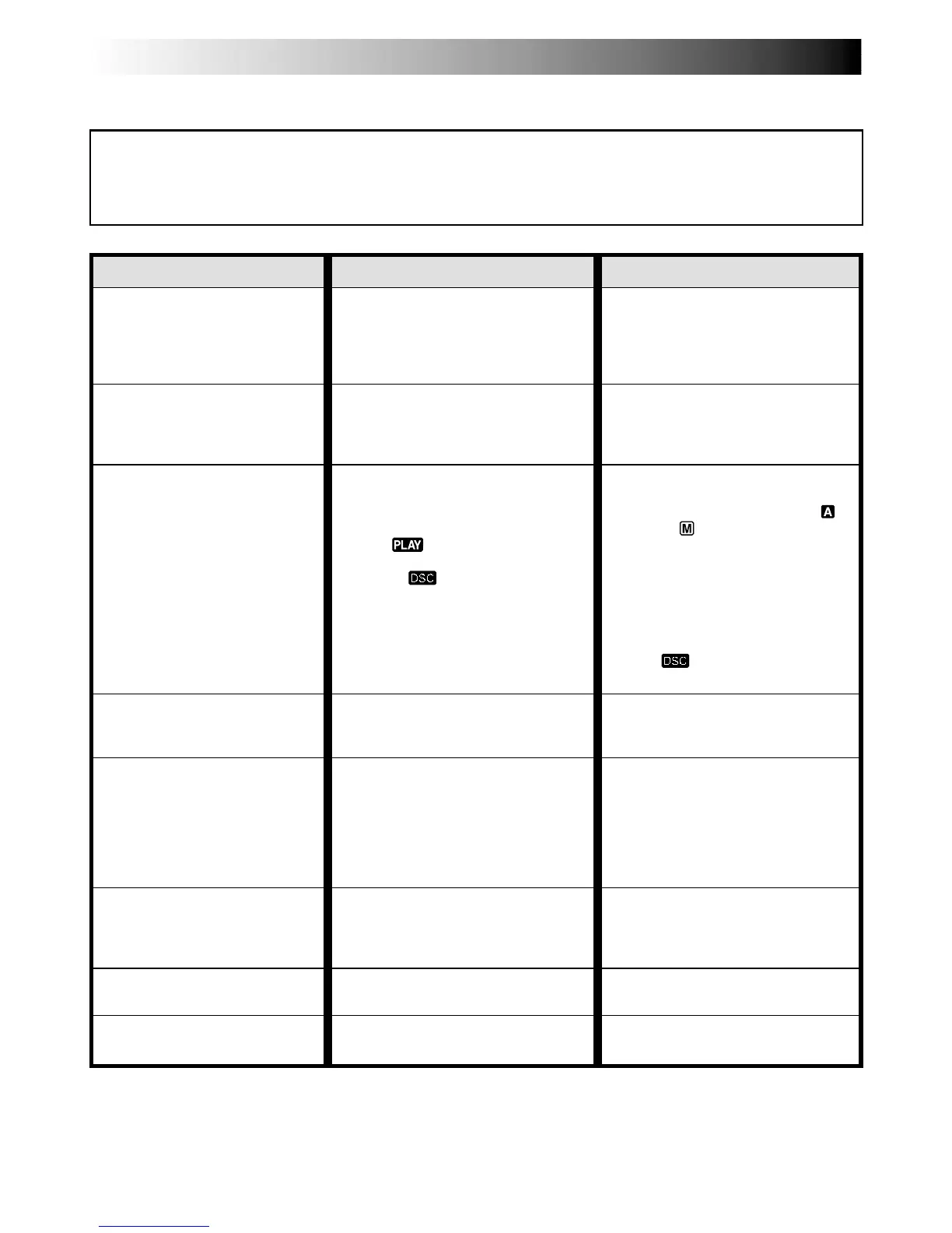 If, after following the steps in the chart below, the problem still exists, please consult your nearest JVC dealer.