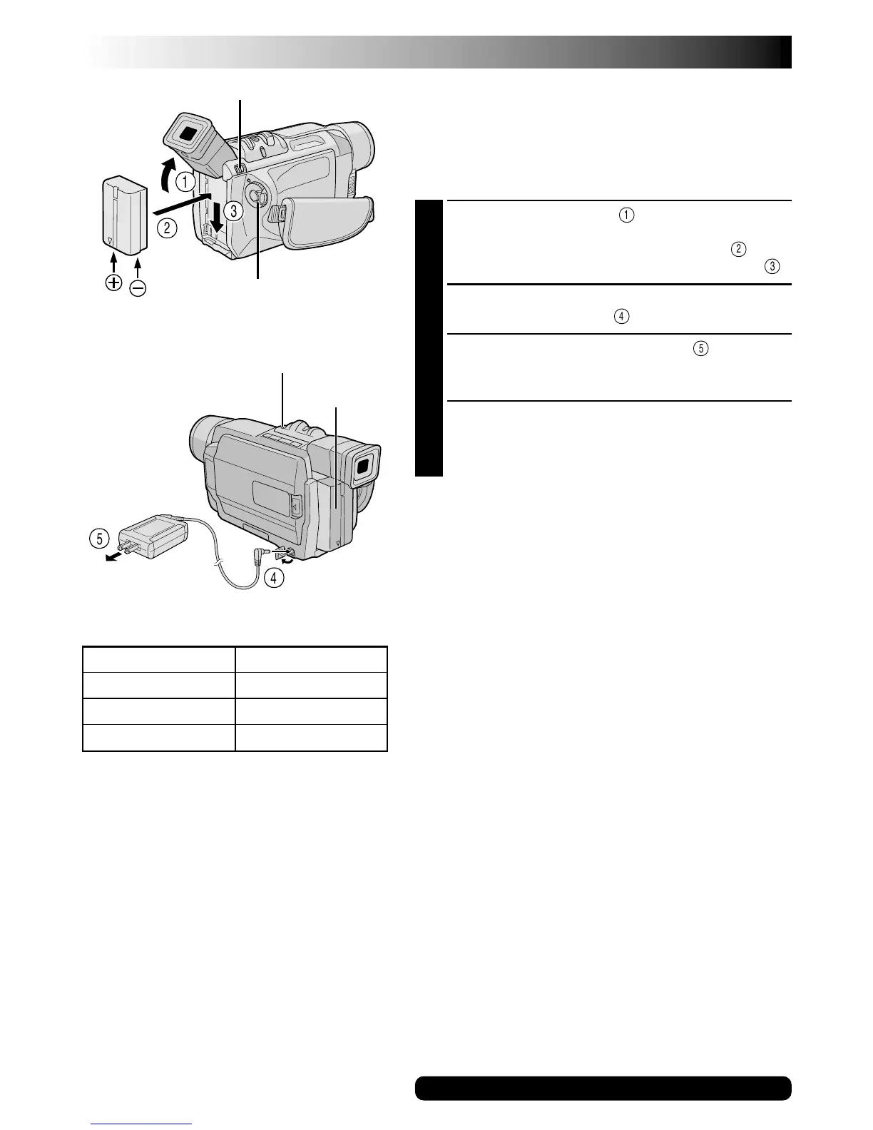 During charging, the camcorder cannot be operated.