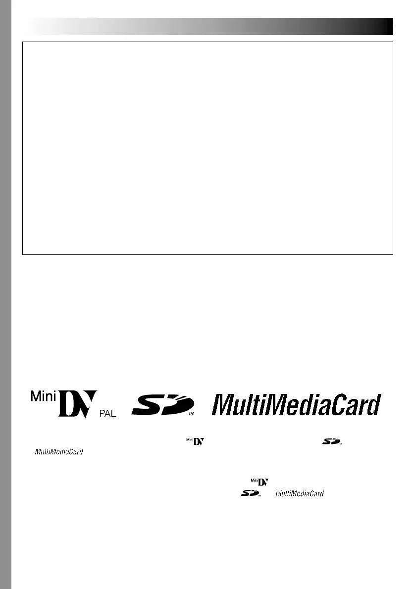 䡲 This camcorder is designed exclusively for the digital video cassette, SD Memory Card and