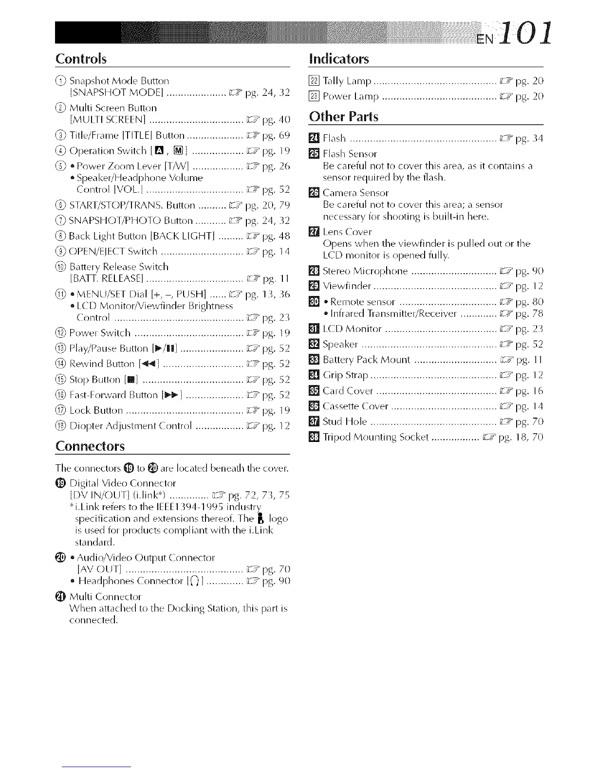 [] Tripod Mounting Socket ................. :T* pg. 18, 70
